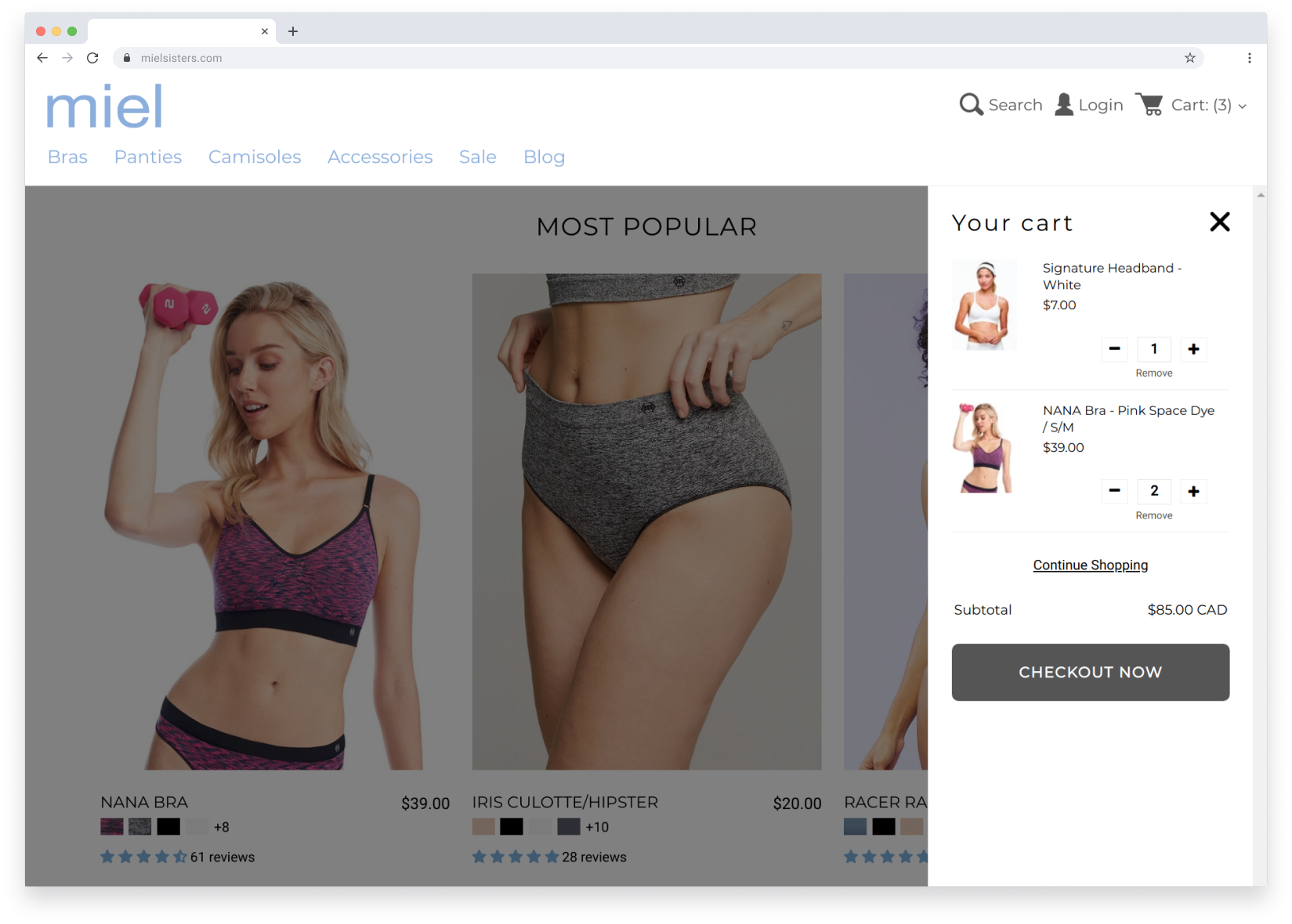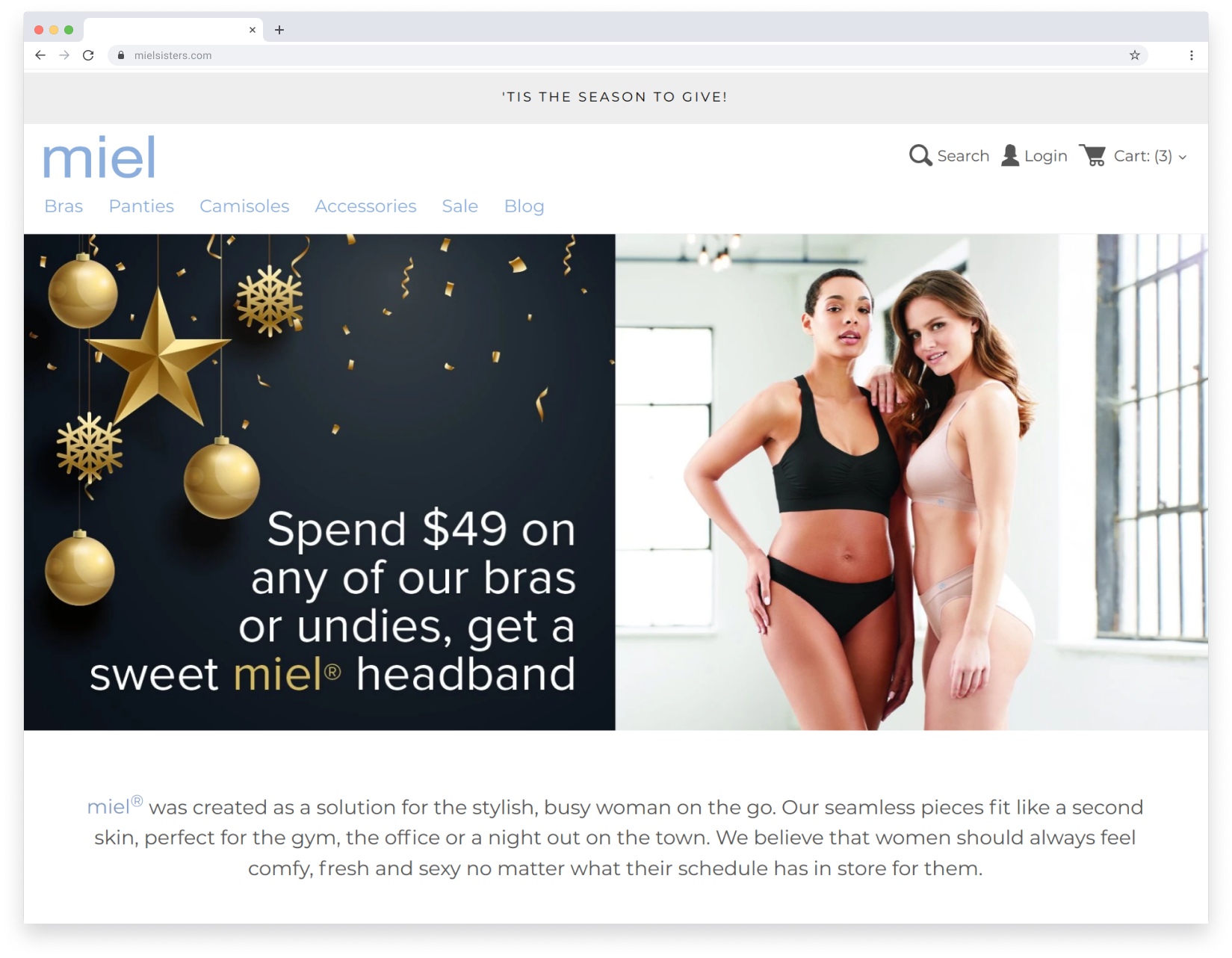 We've been working with Miel Sisters since 2016. They produce an excellent line of women's undergarments, designed to be comfortable, stylish, and perfect for any occasion from work to exercise. We've had the pleasure of helping their website through a few transformations.