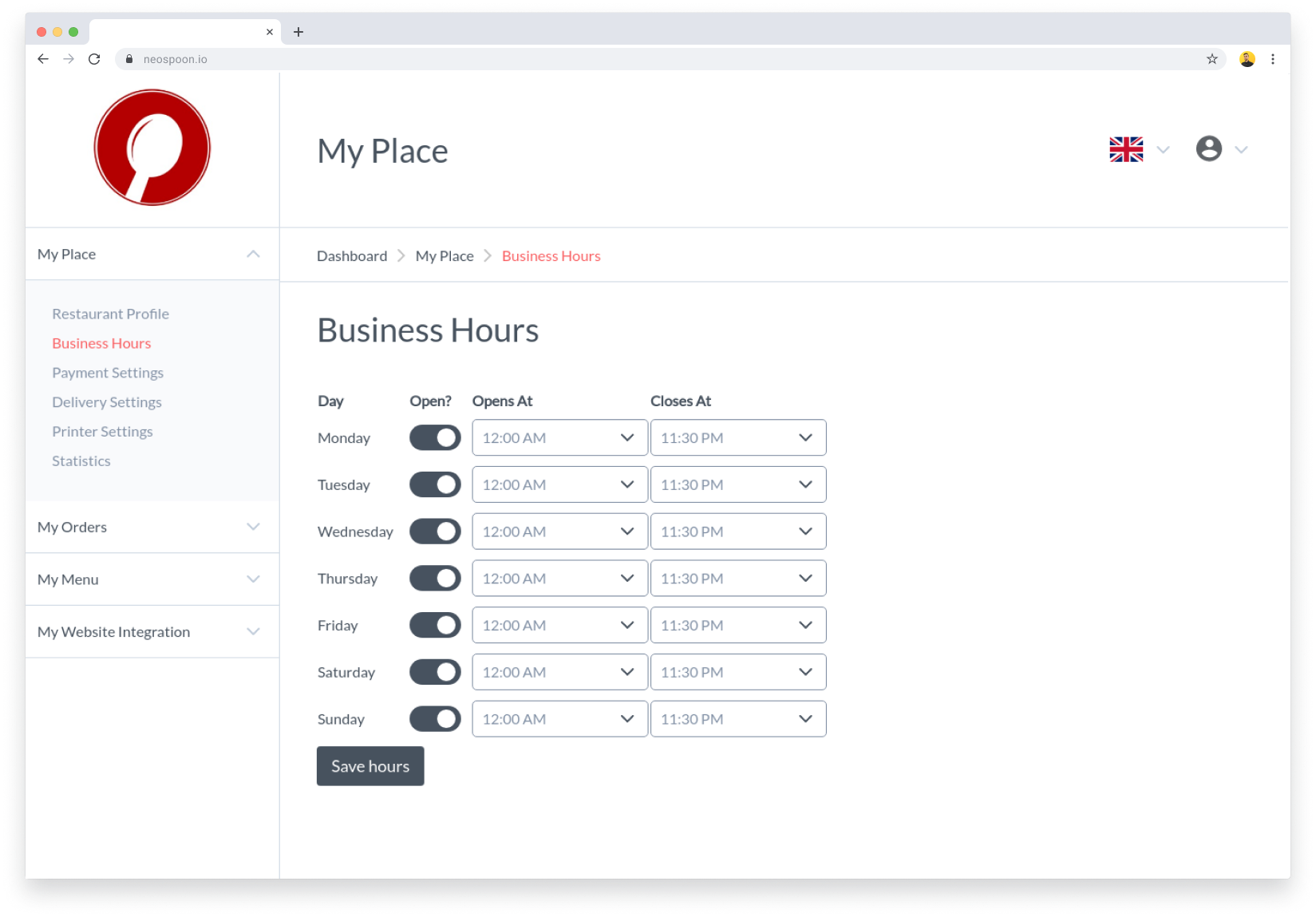 We helped neospoon.io build an order management system to help restaurants take their businesses online.